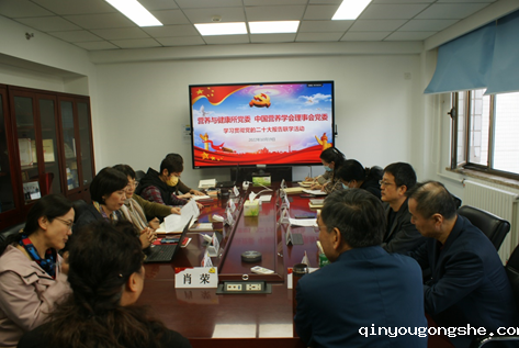 10月19日上午,营养与健康所党委、中国营养学会理事会党委在南纬路27号楼410室共同开展学习党的二十大报告联学活动,所党委委员、支部书记、支部委员15人参加,中国营养学会理事会党委负责同志肖荣教授、秘书长韩军花出席活动。联学活动由营养与健康所党委书记、所长,中国营养学会理事会党委书记丁钢强主持。